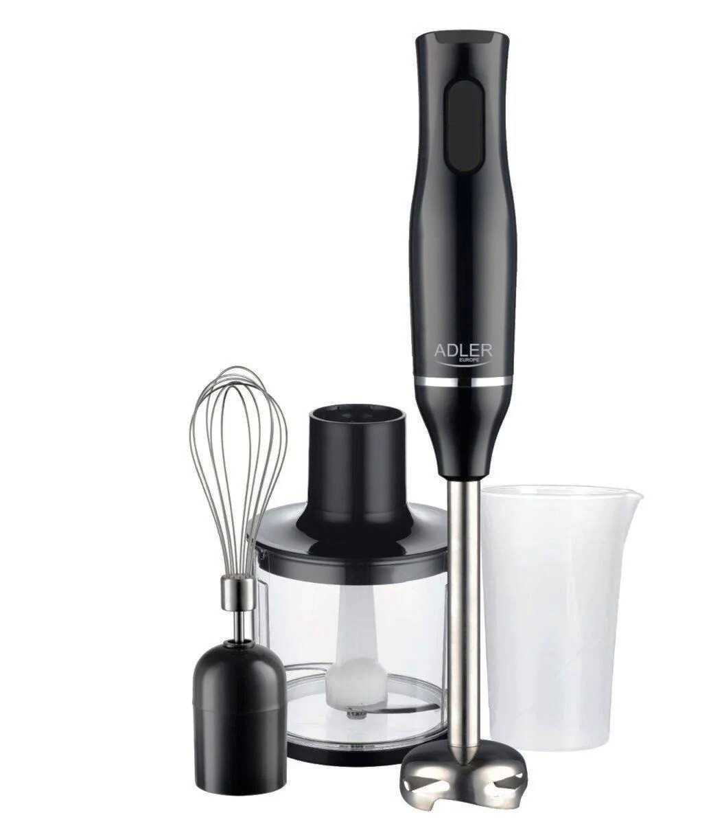 Привезений з Європи новий функціональний блендер-міксер-чопер від польського виробника Adler модель AD4620. Потужність споживання пристрою (максимальна) - 800 Вт, потужність номінальна - 500 Вт, функції: погружной блендер, міксер-вінчик, чопер (подрібнювач), 2 режими регулювання швидкості, ніжка блендера виготовлена з нержавіючої сталі, в комплекті ємність для подрібнювача 450 мл, укомплектована гумовою антиковзаючою підкладкою, а також стакан для блендера і міксера 750 мл, ножі блендера і чопера, а також вінчик виготовлені з нержавіючої сталі, країна виробництва пристрою - Польща, добра європейська якість.