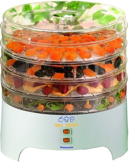 Привезена з Європи нова якісна і надійна сушка для овочів і фруктів від польського виробника Niewiadow модель 970.01 PS. Потужність споживання пристрою (максимальна) - 330 Вт, кількість лотків для укладання фруктів і овочів - 4, діаметр лотків - 30 см, лотки мають велику висоту, що дозволяє укладати великий обсяг продукції, обсяг сушки для фруктів - 14 л, 2 положення регулювання потужності роботи пристрою, просте механічне керування 2 перемикачами, країна виробництва пристрою - Польща, добра європейська якість.